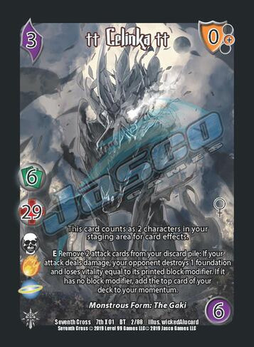 You might be wondering why there are 2 character cards for this one, well Seventh Cross was a set designed entirely around stacking a second version of your starting character. Many of the characters had a clear best character to start as but Celinka is one of the characters that either character works fine as your starting character, a lot of players in fact prefer starting as Celinka 2 to be more aggressive. In this case we are starting with version 1 as I find it leads to more consistent but less explosive games.