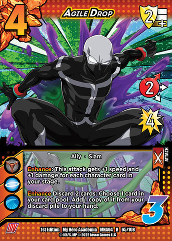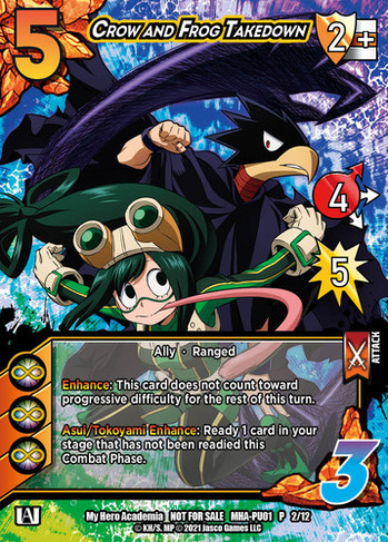 Just like that we've reached the MHA block, but fear not we have plenty of cool old toys these newer characters can use to polish up their game plans. Let's start with everyone's favorite frog Tsuyu Asui, in set 1 MHA format she was a monster tearing up the competitive events until several of her cards got banned to bring her more into line with the rest of the format, well it may be banned in MHA Block but Crow and Frog Takedown is still legal in retro(and standard for that matter) so time to dig em back out and put em back to work. Combine that with the old killer kick Nivose, which tore up the 2016 meta and Asui can get back up to her old tricks of playing a truly absurd number of attacks in a turn.