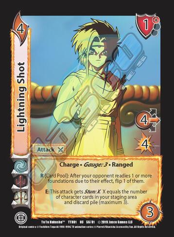 Victor’s got an interesting game plan, he rewards us for playing our turns backwards, starting with our lowest difficulty attacks and then ending with our highest difficult attacks. I’d like to highlight a short little 2 attack sting to show just how effective this can be in him. Let's say we open up our turn with a Jirashin, I love this card it’s either going to deal damage or draw us a card(most of the time it’ll deal damage if we are being honest but hey Victor’s giving it +1 damage off it’s stun so free 3 damage is nothing to shake a stick at), then we follow it up with Indiscriminate Shock 1,300,000 Volts. Between just these 2 cards we are throwing out effectively Stun 5 and 17 damage.